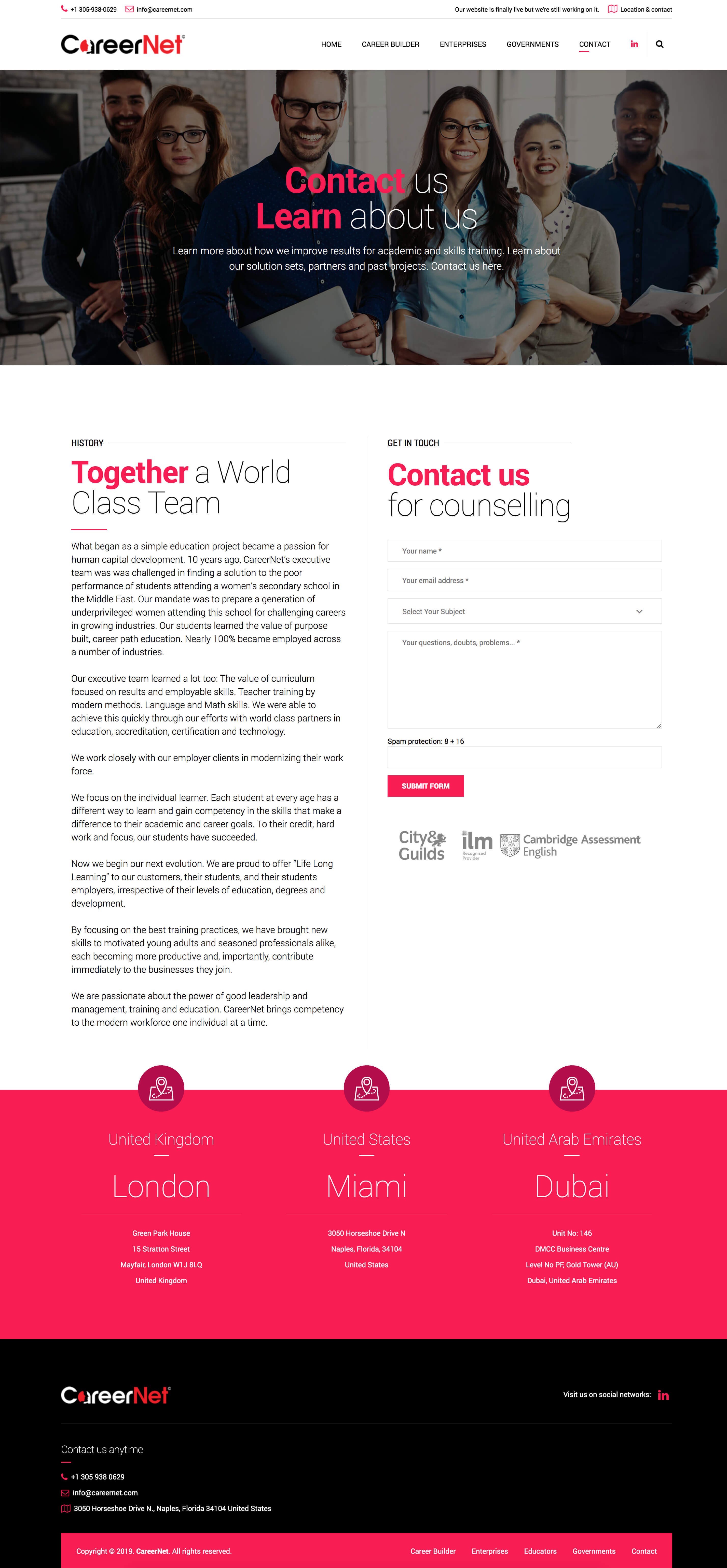 CareerNet, along with its partners, provides educational development at many levels: K-1 through K12, vocational and professional, entry level to senior management. We educate in many parts of the world.