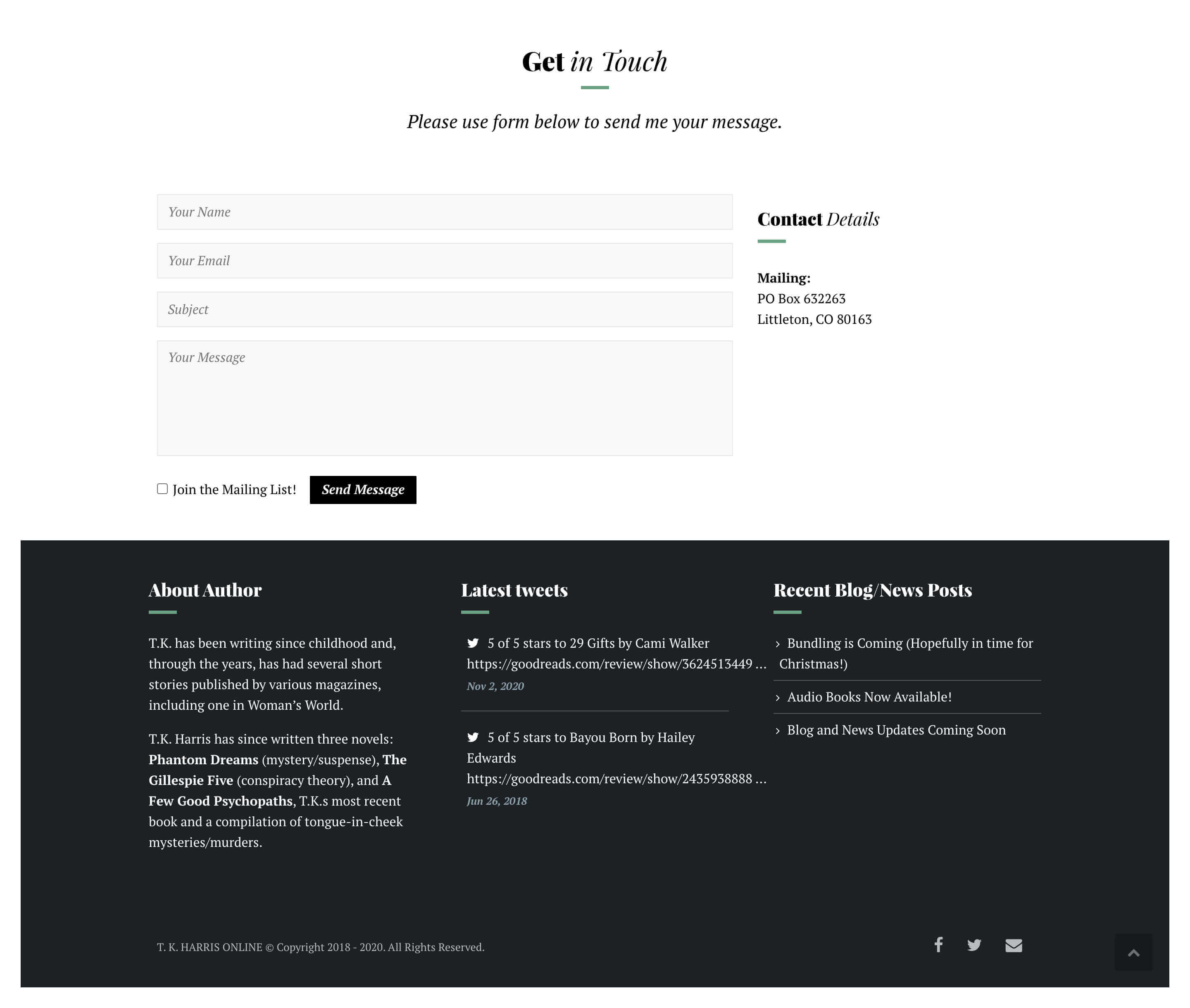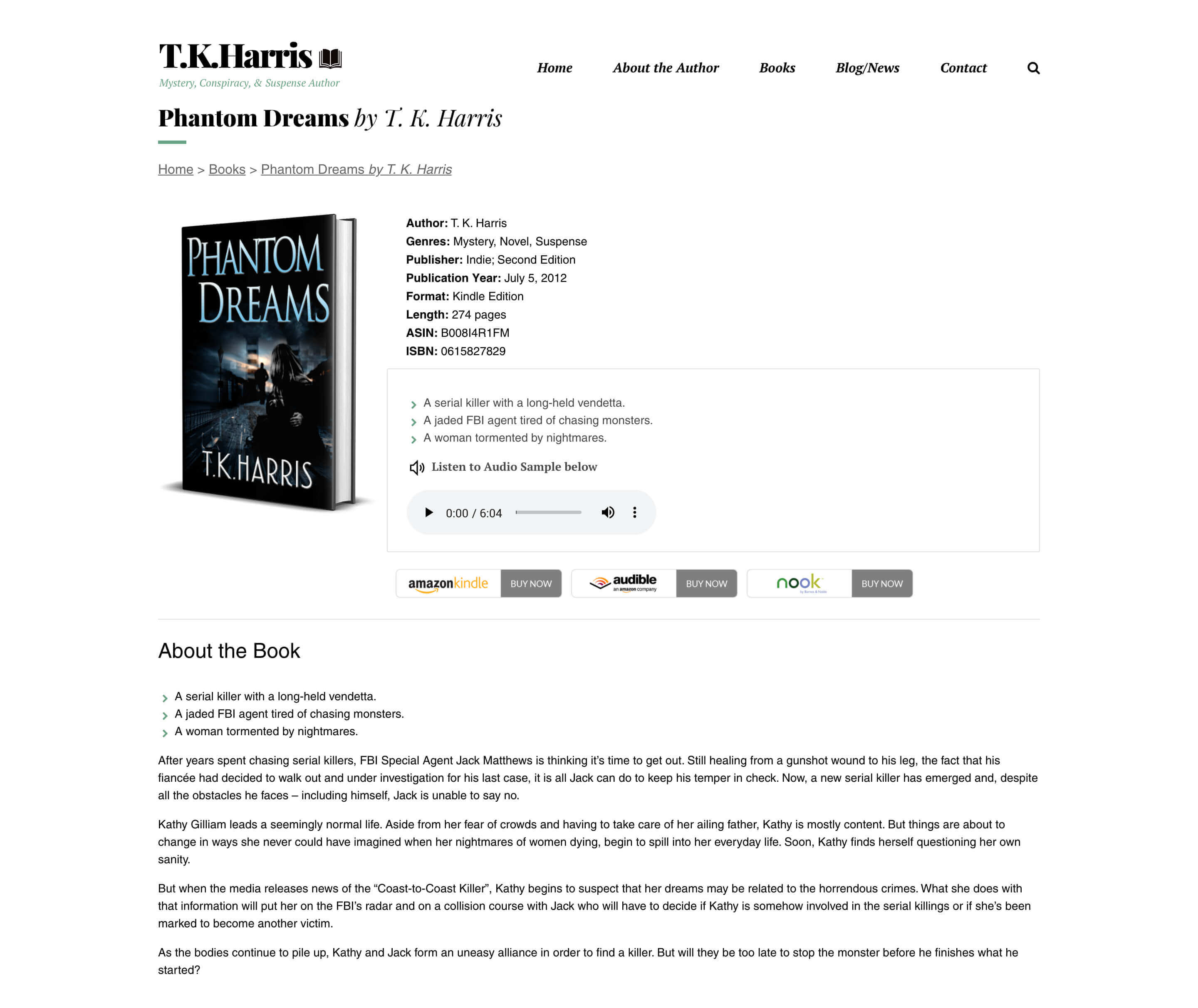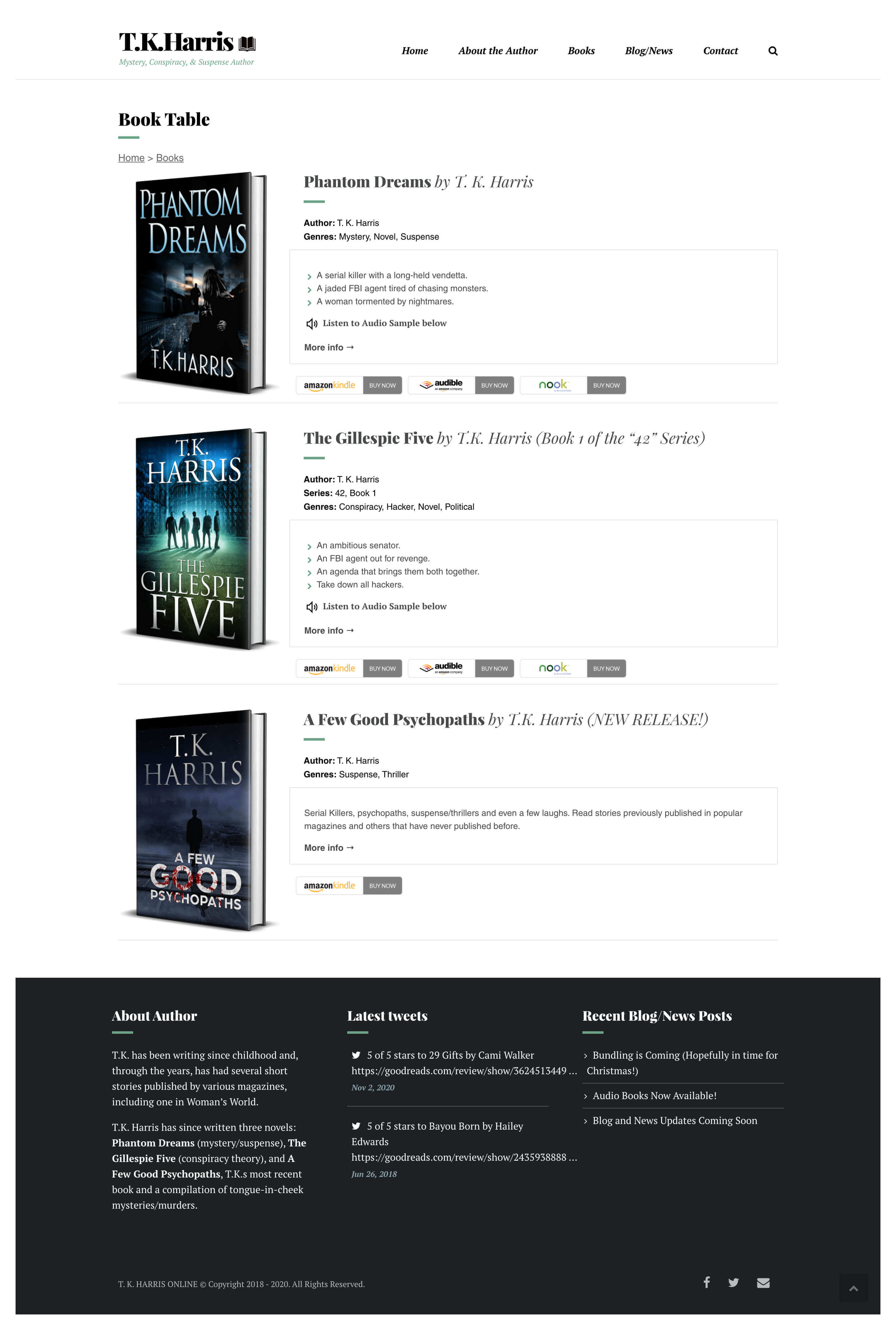 T. K. Harris Online – Mystery, Conspiracy, and Suspense author writing novels and publishing in several genres. She also sells her books online at Amazon and Barnes & Nobles store just to name a few.